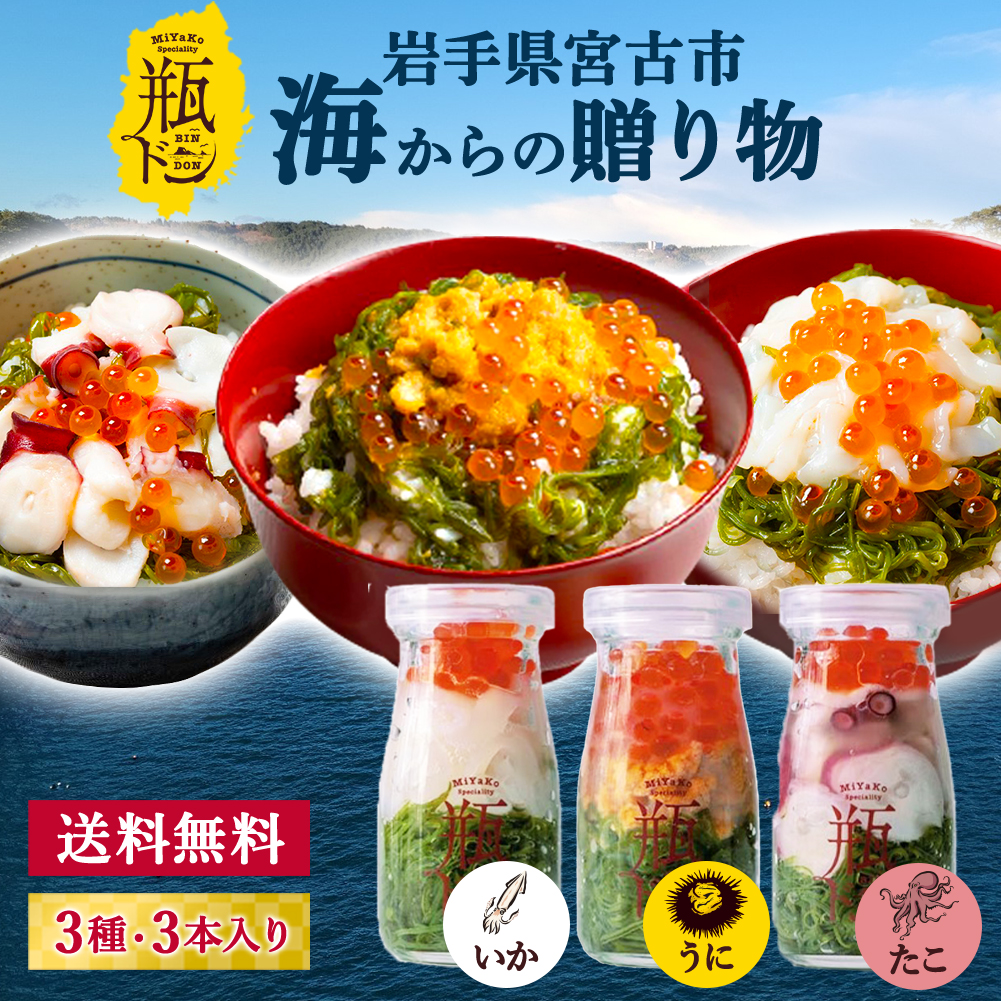 | 原材料名 | たこ:煮タコ(水タコ(岩手県沖産)、食塩)、めかぶ(三陸産)、いくら醤油漬(鮭卵(岩手県産)、醤油、醸造調味料、その他)、水あめ、アミノ酸液、清酒、醤油、カツオエキス、たん白加水分解物、酵母エキス/酸味料、酸化防止剤(V.C)、(一部に小麦・大豆・いくらを含む) うに:めかぶ(三陸産)、蒸しウニ(岩手県産)、醤油漬いくら(鮭卵(岩手県産)、水あめ、醤油、その他)、水あめ、アミノ酸液、清酒、醤油、カツオエキス、たん白加水分解物、酵母エキス/酸味料、増粘多糖類、調味料(アミノ酸等)、トレハロース(一部に小麦・大豆・いくらを含む) いか:イカ(岩手県産)、めかぶ(三陸産)、いくら醤油漬(鮭卵(岩手県産)、醤油、醸造調味料、その他)、水あめ、アミノ酸液、清酒、醤油、カツオエキス、たん白加水分解物、酵母エキス/酸味料、酸化防止剤(V.C)、(一部に小麦・大豆・いか・いくらを含む) |
