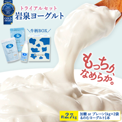 岩泉ヨーグルト トライアルセット [ 加糖 ・ 無糖 1kg × 2袋/ のむヨーグルト 1本 ] ヨーグルト 食べ比べ お取り寄せ もっちり 岩手 ギフト