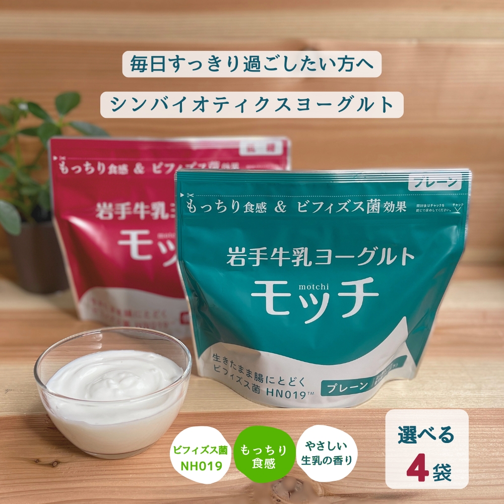 | 商品説明 | おいしいだけじゃない!腸活&菌活できるシンバイオティクスヨーグルト ●「イーハトーブのおくりもの」の商品名とパッケージが変わりました。 ヨーグルトの原材料や作り方は変わっていません。 【岩手牛乳ヨーグルト モッチ】 [ プレーン] 岩手県産の新鮮な生乳を原料の96%使用しており、まろやかな風味と優しい生乳の香りが特徴です。 [低糖] 岩手県産の新鮮な生乳を原料の95%使用しており、まろやかな風味と優しい生乳の香りが特徴です。 フラクトオリゴ糖を使用し、糖質を48%カット!丁度いい甘さなのに糖質オフ! ※糖質48%カット:日本食品標準成分表のヨーグルト(脱脂加糖)と比較 アルミパウチで低温・長時間発酵させることで、ほどよい酸味ともっちりとした食感を実現しました。 香料・増粘剤・安定剤は一切使用しておらず、生乳そのものの美味しさをお楽しみいただけます。 おいしさだけでなく、腸内フローラを改善することで健康の増進維持に役立つ、シンバイオティクスヨーグルトです。 健康や美容に気を使っている方、免疫力を高めたい方、便秘など胃腸の調子を整えたい方におすすめです。 【パウチヨーグルト】 アルミパウチは密封性が高く、乳酸菌やビフィズス菌が嫌う酸素に触れることが少なくなり、他の食品の臭い移りを防ぐこともできます。さらに開封後の再封性が高く空気にあまり触れないよう保存することが可能な為、酸度の上昇を抑えることができます。 【シンバイオティクス】 SYN BIOTICSのSYNは「一緒」という意味です。 腸まで届く生きた菌(プロバイオティクス)と、菌を育てる成分(プレバイオティクス)を一緒に摂ることをシンバイオティクスといいます。 シンバイオティクスを体内に取り入れ、腸内環境を整えることで、免疫力アップなどの様々な効果が期待できます。 「モッチ」は、ビフィズス菌HN019(プロバイオティクス)を配合し、更にビフィズス菌を活性化させる食物繊維とオリゴ糖(低糖のみ)(プレバイオティクス)を加えることで相乗効果が生まれ、より一層腸内環境を整えるシンバイオティクスをプラスしたヨーグルトです。 ※ビフィズス菌HN019は、胃腸機能の回復・改善、便秘予防と改善などの効果を期待できます。 | |