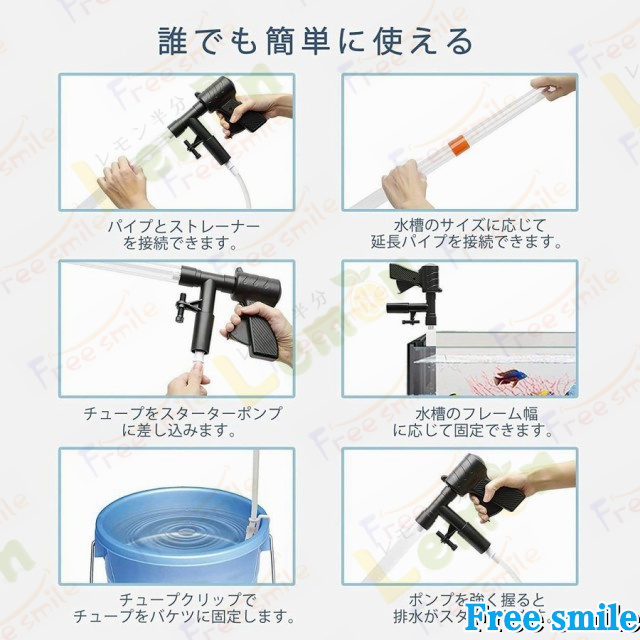 水槽手動水チェンジャー、定期的な底砂掃除や水換えをすることで、水質も安定し、魚もよい状態を保つことができます。水抜きのための容器を用意しなくても飼育水を循環させるだけでなので、手軽に掃除が行えます。水槽のおそうじポンプで定期的な水槽メンテナンスが行える便利用品です。
