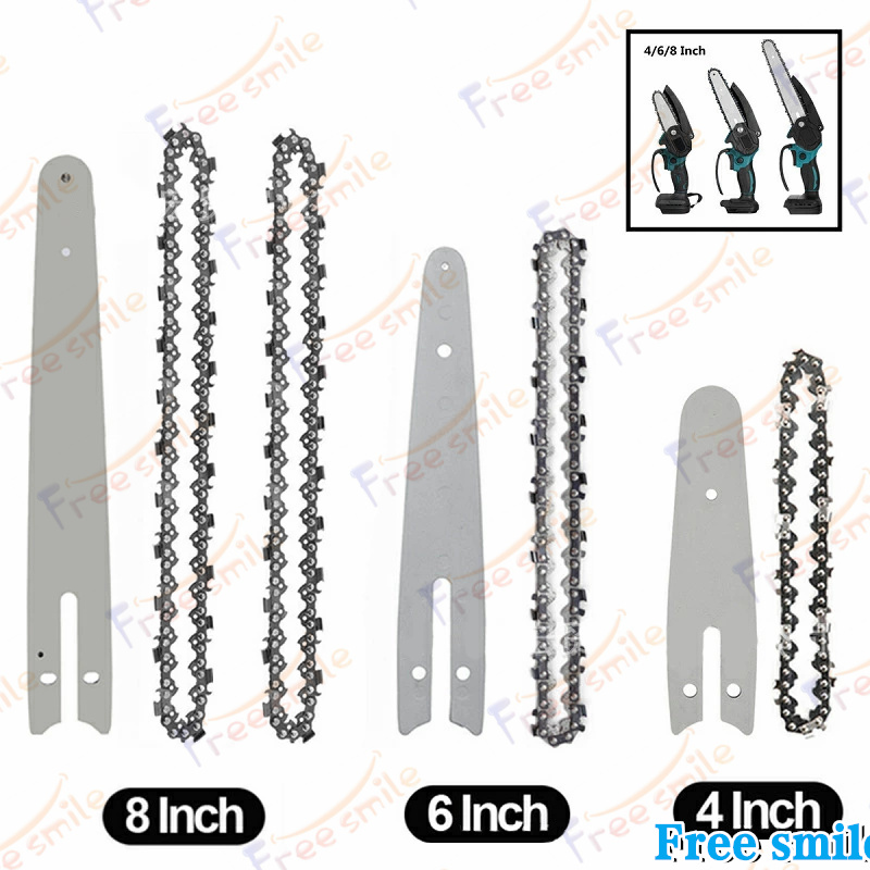 チェーン刃 2個セット 替え刃 チェーンソー 交換刃 4インチ 6インチ 8インチソーチェ ガイド ミニチェーンソーの替刃 チェーンソーアクセサリ(ガイドボード付)