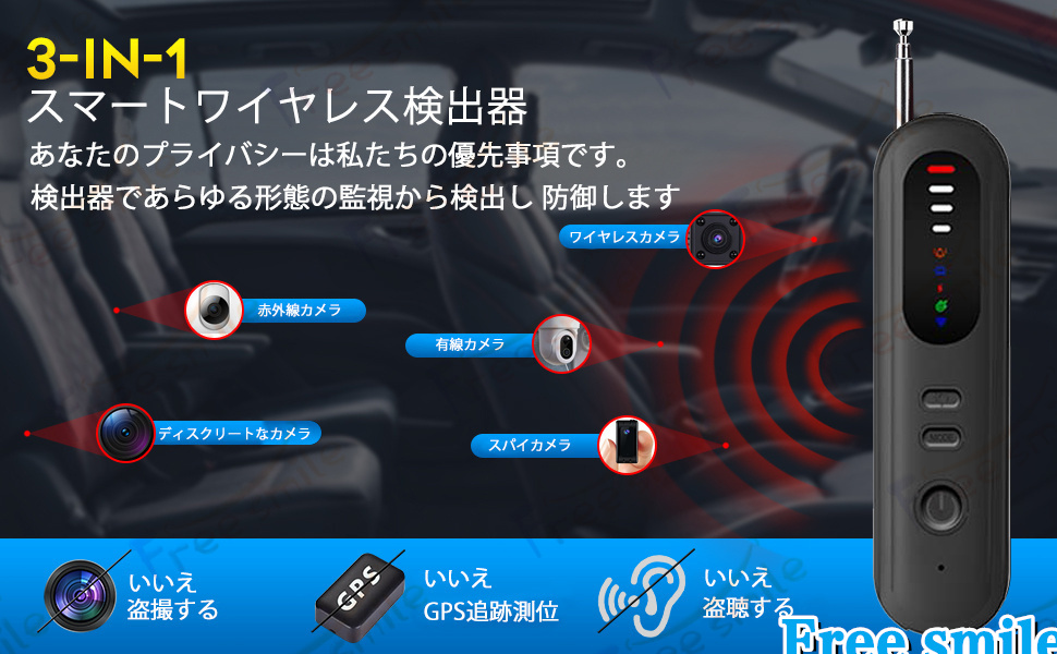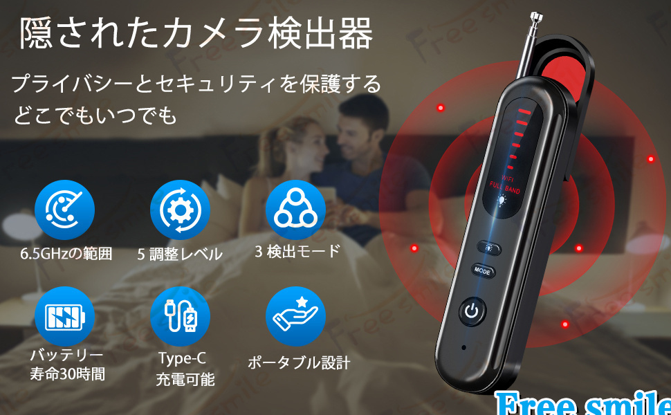 【1台5役】この盗聴器発見機には5つモードが付き、「WI-FI」探知モード、「赤外線」探知モード、「暗視」探知モード、「磁気」探知モード、「防犯アラーム」モードがあります。盗聴器、隠しカメラ、暗視カメラ、GPS追跡機などから発せられるRF電波やWi-Fi電波を高精度で検知します。