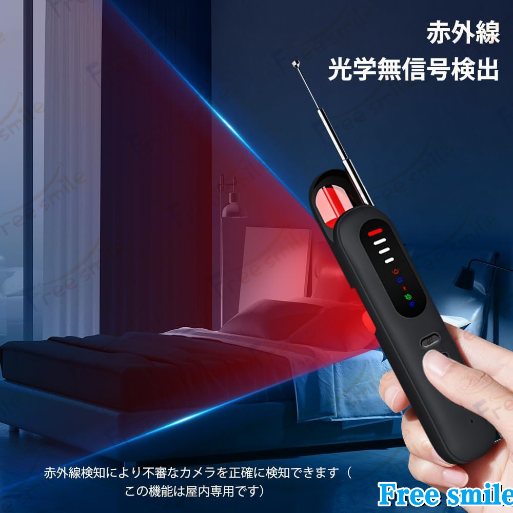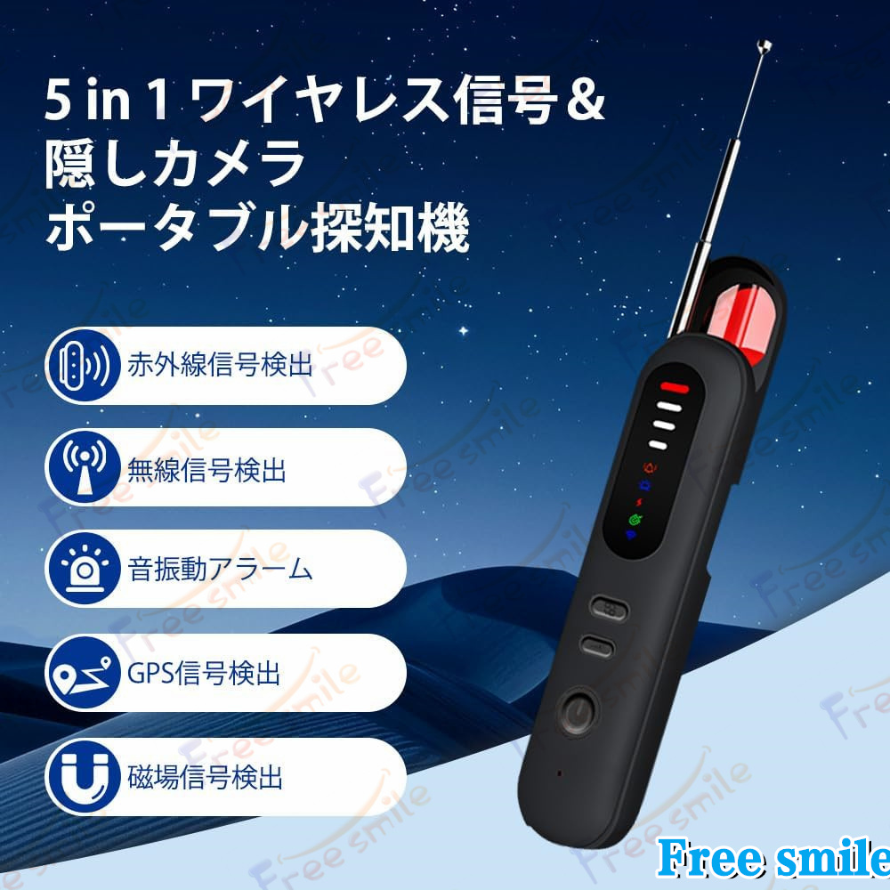 盗聴器発見器 探知機 盗撮カメラ発見器 1台5役 高感度 gps発見機 日本語取扱書 PSE認証済み 赤外線探知機 隠しカメラ発見 電波探知 軽量 高感度 オフィス旅行