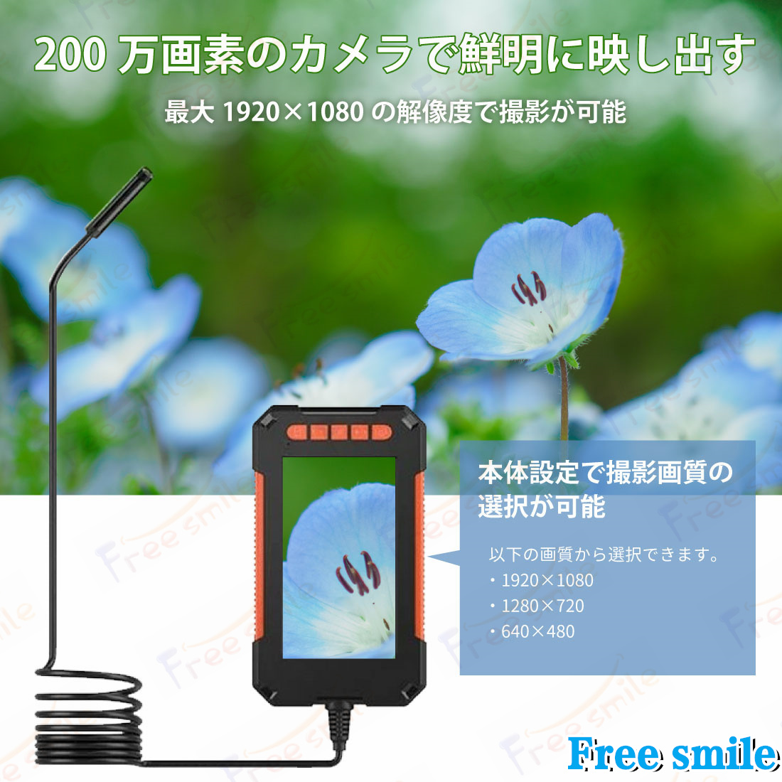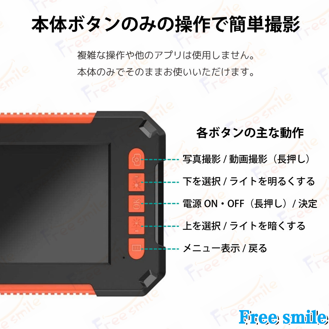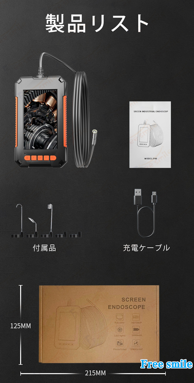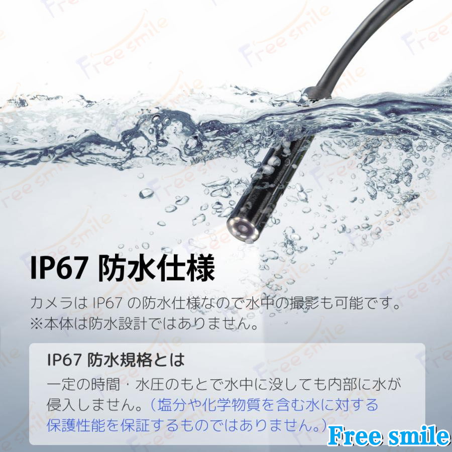 ・防水規格:IP67(カメラレンズとフレキシブルアームのみ防水。機械本体は防水設計ではありません)