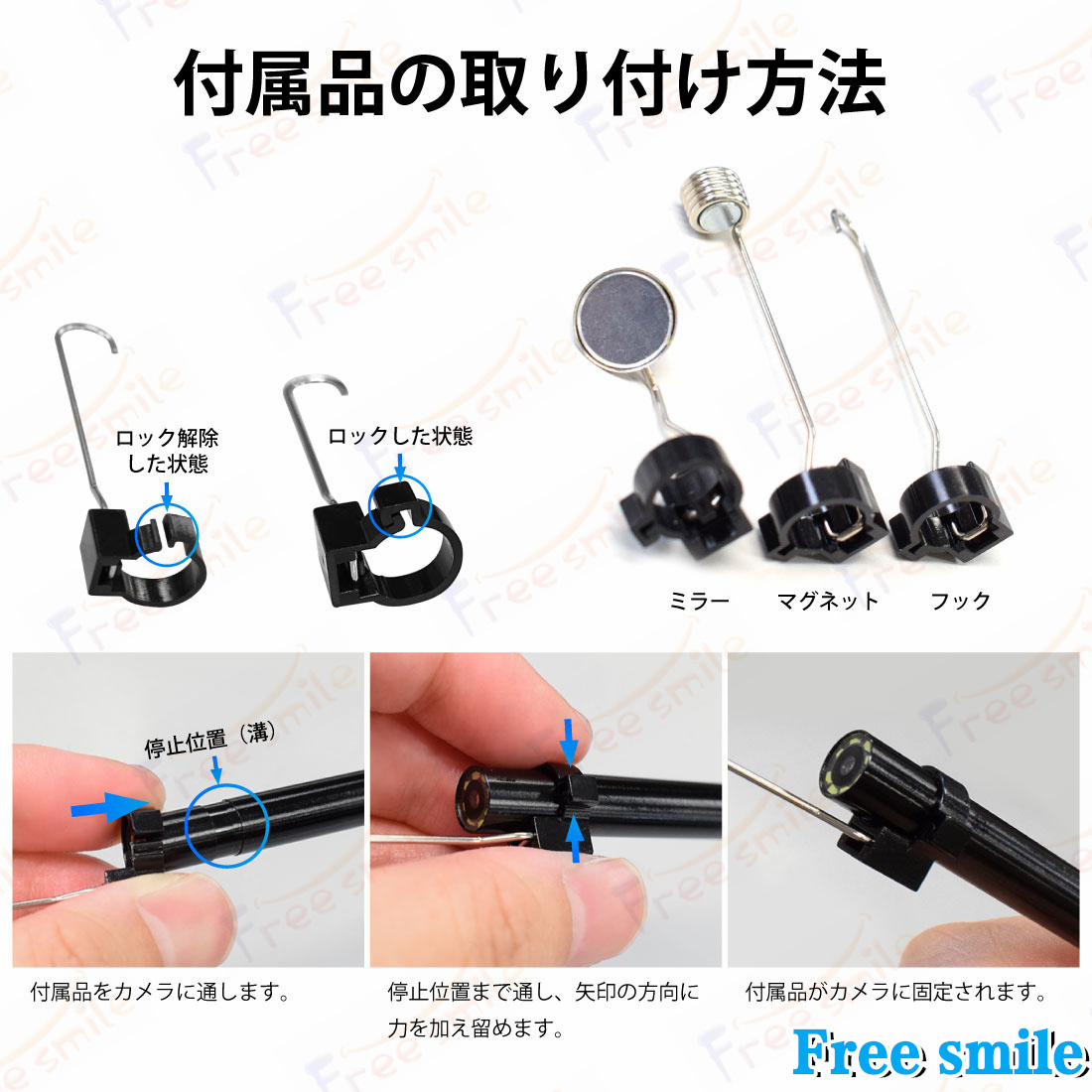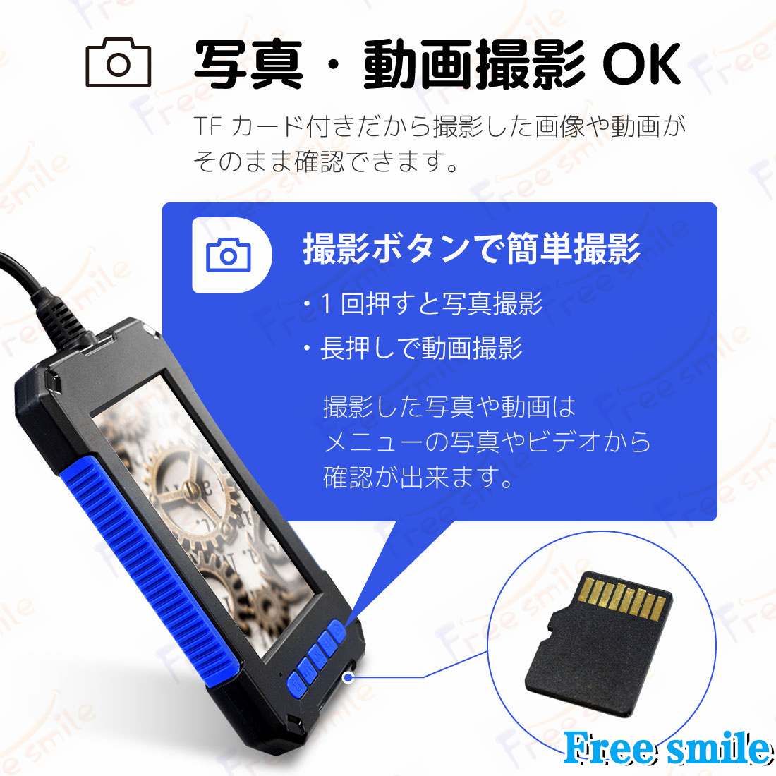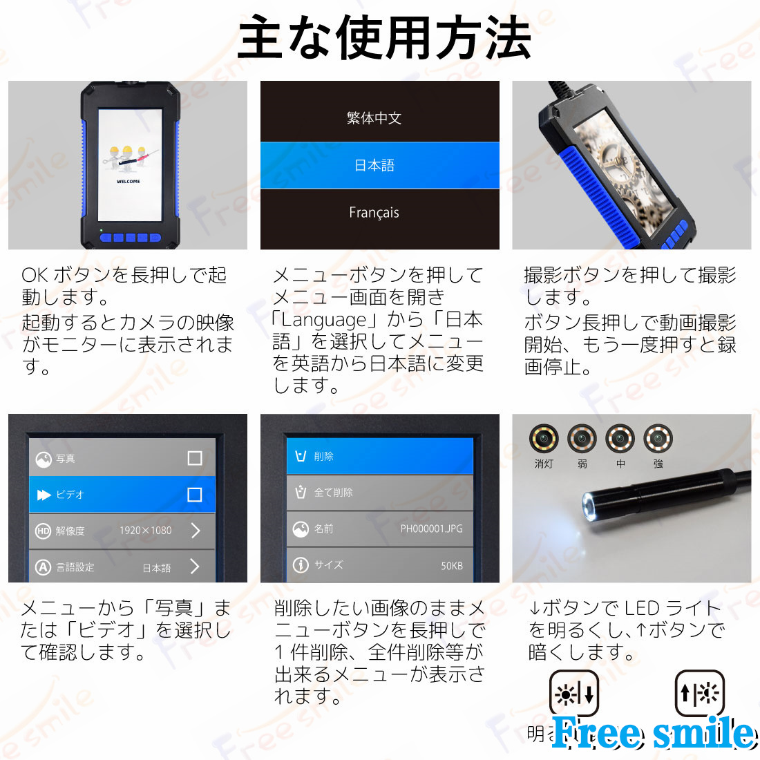 ・防水規格:IP67(カメラレンズとフレキシブルアームのみ防水。機械本体は防水設計ではありません)