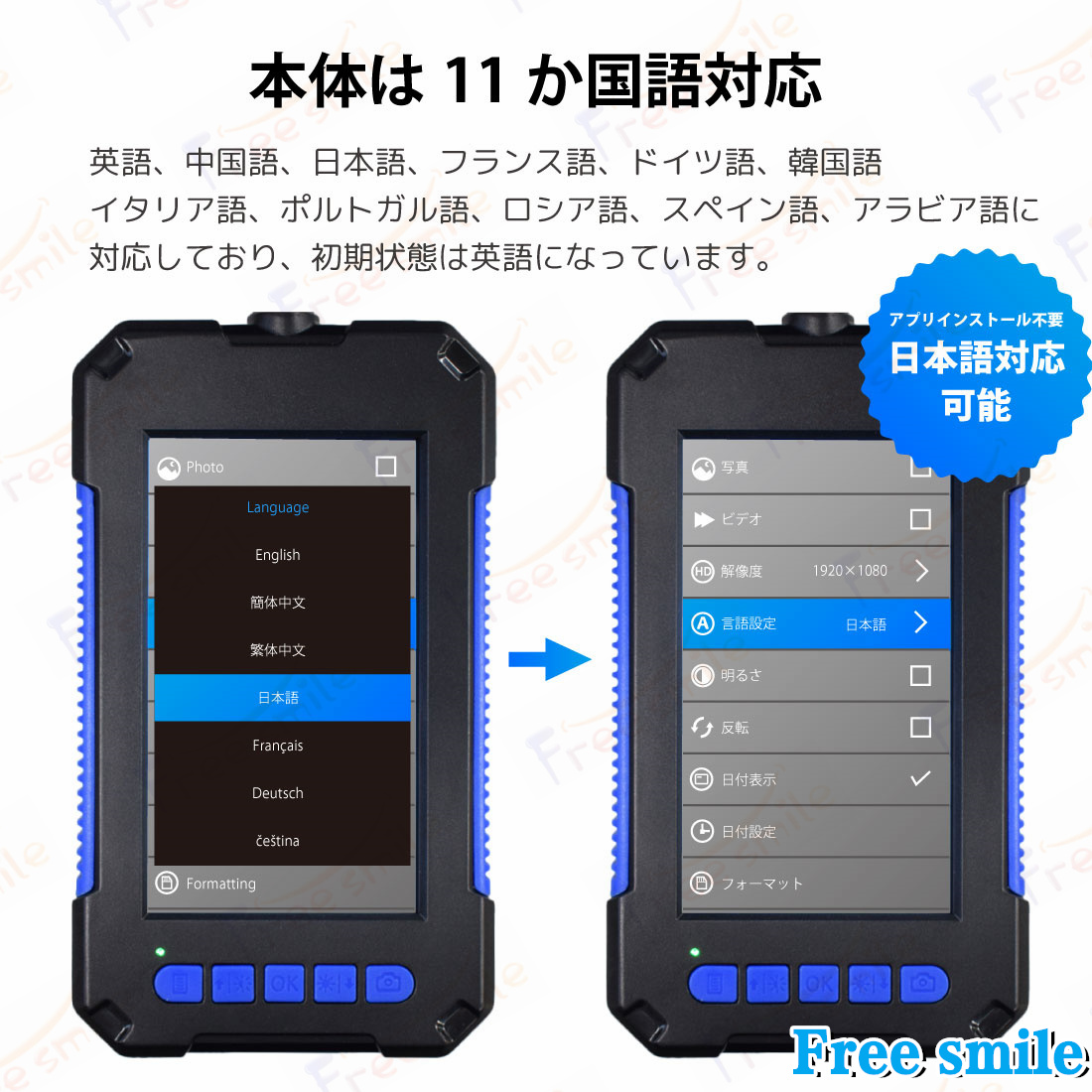 様々な言語に対応しており日本語に設定できます。