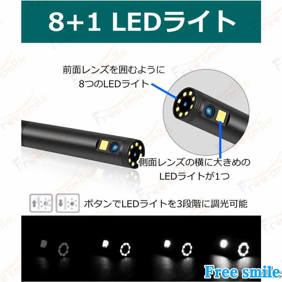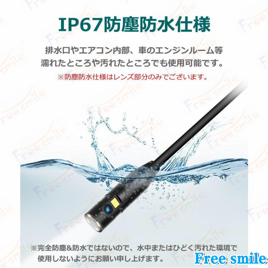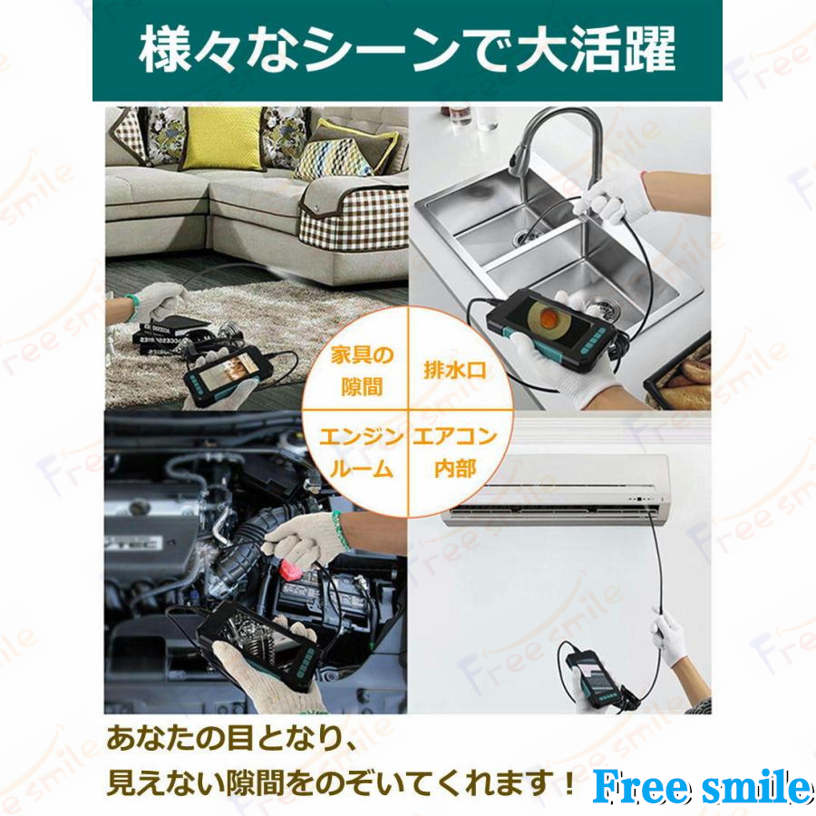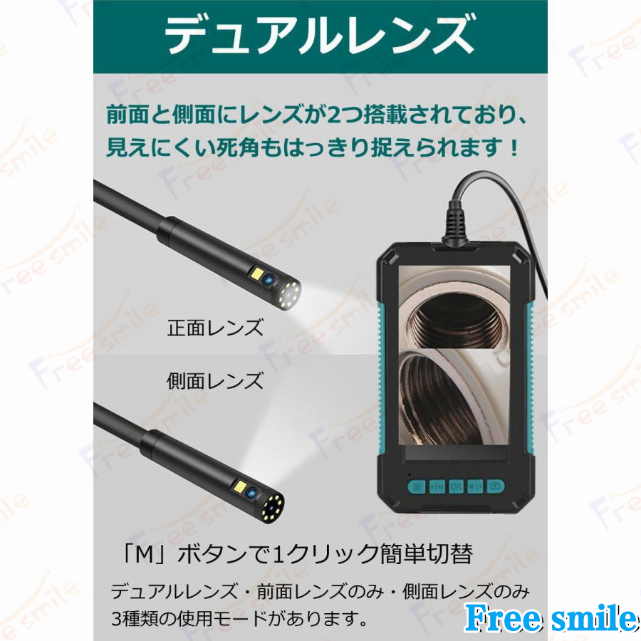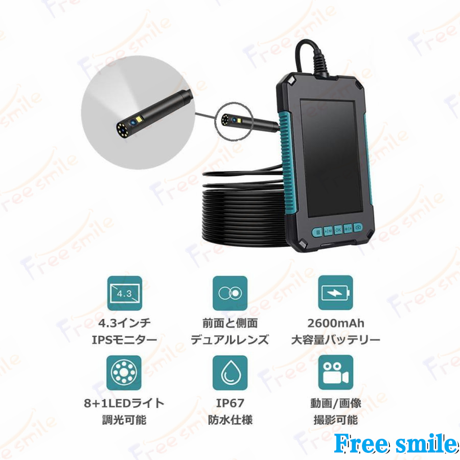 内視鏡カメラ 前面と側面のダブルルレンズ ファイバースコープ 内視鏡ケーブル 2m/5m/10m スネーク カメラ 4.3インチ IP67防水 LEDライト付き 暗闇撮影内視鏡