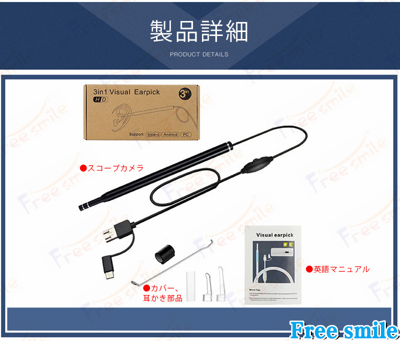 Android / PCシステムをサポートし、柔軟なセミリジッドケーブルを曲げて形状を維持できるだけでなく、耳垢のクリーニングのために閉じた場所に入ることができます。