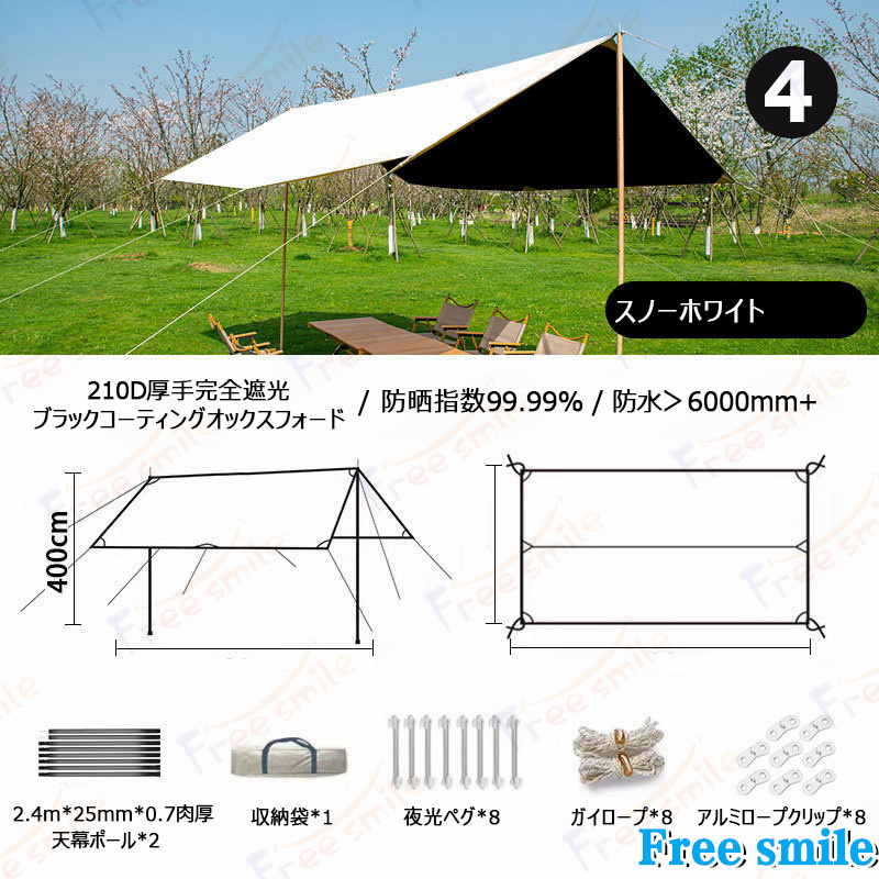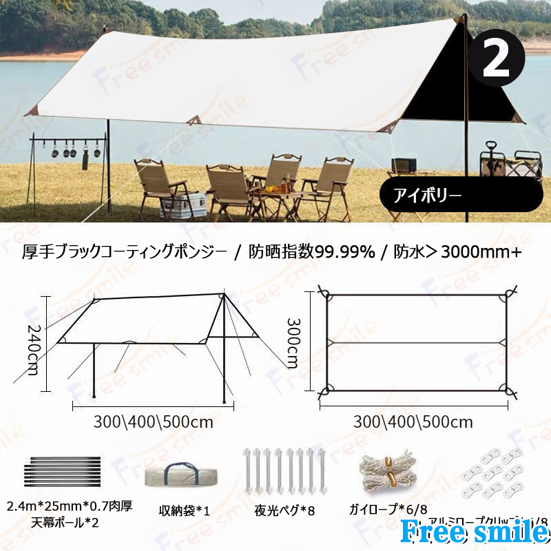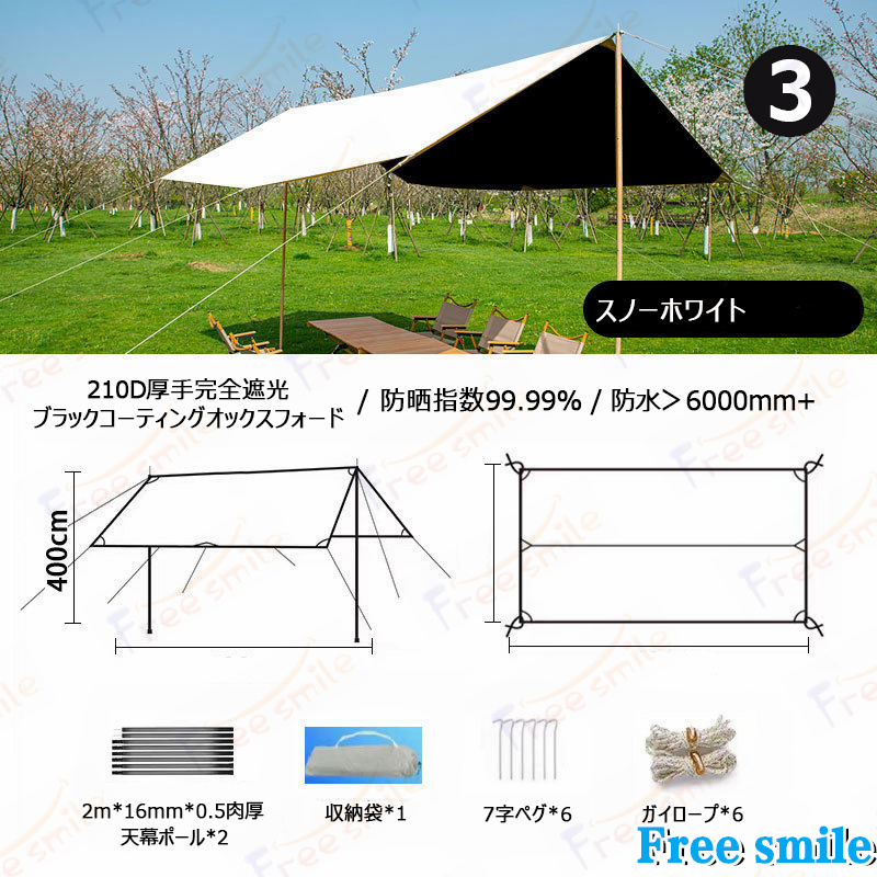 大型タープ 日よけ天幕 シェード 3x3/4/5m ポータブル 防水 収納袋付き 簡単設置 高品質 大型シェード 宿泊 アウトドア キャンプ用品 厚手ブラックコーティング