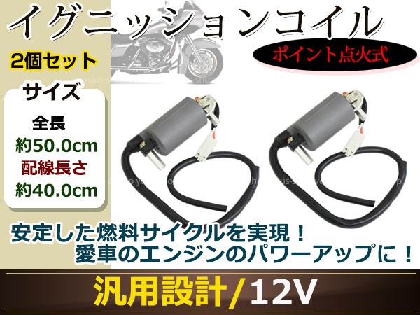| 【商品情報】 【参考適合車種】 TS250 Z250FT GT125 GT250 GT380 GT550 GT750 ※商品はお客様の車体に適合しているか、お客様の実際の車体でご確認の上、ご入札ください。 ※記載以外の車種にも対応している場合や、年式、グレードによって実際に取り付けできない場合がありましても返品(返金)致しかねます。 ■セット内容 イグニッションコイル 2個セット |