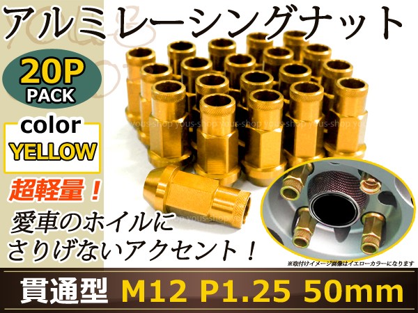 | 【商品情報】 【サイズ】 M12×P1.25 【全長】 50mm 【HEX】 19mm 【形状】 貫通型Aタイプ 【カラー】 金 ゴールド ■セット内容 20本 ※ハイエース、キャラバン等の6穴タイプのお車は24本必要となります。 |