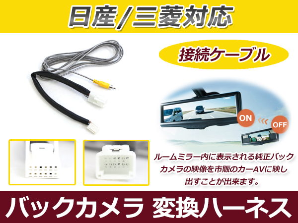 | ■参考適合車種■ ・メーカー:日産 ・車種:デイズルークス ・型式:B21A ・年式:H26/2〜現在 ・備考:アラウンドビューモニター付き車に適合可能 ・注記:※1 アラウンドビューモニター付車/マルチアラウンドモニター付車に取付けできます。 ※2 取付けするカーAVのバックカメラ用ガイドライン表示はOFFにしてください。 ※3 表示される純正のガイドラインは調整出来ません。 ※4 純正アラウンドビューモニター/マルチアラウンドモニターを使用する場合、必ず車両の取扱説明書を参照してください。 ※5 取付けするカーAVの仕様によっては正常に映像が表示されない場合があります。 ※6 アラウンドビュー/マルチアラウンド映像の出力時、ルームミラーモニターは数秒間ブルーバック表示され、その後映らなくなります。 ※7 変換コードの映像端子をカーAVのバックカメラ映像入力端子に接続した場合、「R(リバース)」以外のときに[CAMERA]ボタンを操作してもフロントカメラの映像等は表示されません。 ※8 フロントピラーの超音波センサー装着車(セキュリティー&セーフティパック プレミアム)については未調査。 ※9 ドライブレコーダー付車については未調査。 市販カーAV取付キットは別途購入が必要になり、市販カーAV機能にバックカメラ映像入力をお持ちの製品に限ります。 ・互換商品品番:TP029BC |