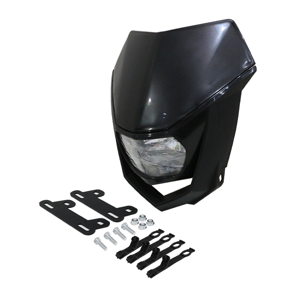 | オフロード用汎用ヘッドライトカウルです。 ブラック/ブラック カラー バルブは【H4またはHS1】の使用が可能です。 標準ではHS1 35/35Wがついています。 ポジションランプが付きますので、カラーバルブやフラッシュバルブを使用してアレンジするのも面白いと思います。 |