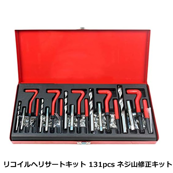 | ネジ山修正 131ピースセット リコイルヘリサートキット ネジ溝のサピ落し、ネジ山の修正、ネジトラブルの強い味方! 便利なドリル付きです! 一番使われる5サイズをセットに!プロ仕様の本格組合わせです。 |