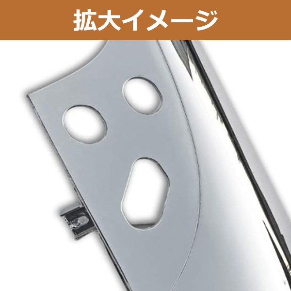 | トラッカー必見!!メッキコーナーパネルです。 メッキコーナー純正交換タイプです。 コーナーパネルはインナーパネル付きになります。 純正にはないフロントフェイスを演出します。 また、美しいクロームメッキとなりますのでゴージャス感もUPします! |