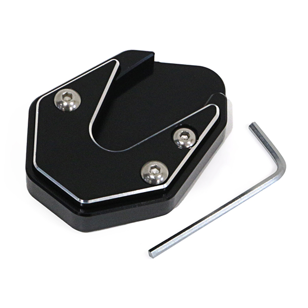 | やわらかい地面や砂利駐車場などで不安定な車体を安定させるサイドスタンドプレートです。 六角レンチだけで簡単に取り付けできます! 錆びにくく高強度な素材となります。 |