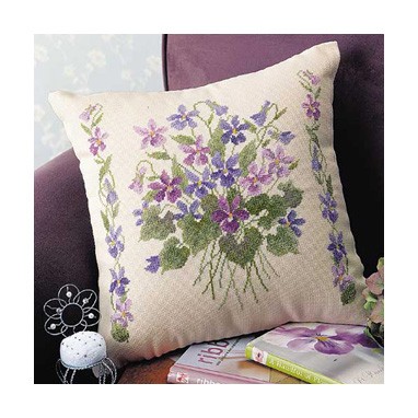 Olympus オリムパス クロスステッチ 刺しゅうキット クッション スミレ ベージュ 6026