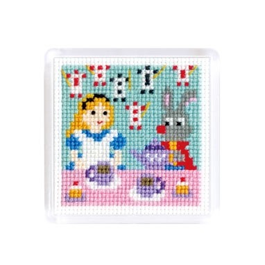 Olympus オリムパス クロスステッチ 刺しゅうキット ものがたりシリーズ マグネット 不思議の国のアリス 白 9060