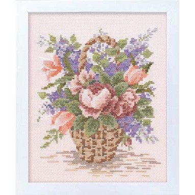 Olympus オリムパス クロスステッチ 刺しゅうキット フラワーガーデン やさしい花刺しゅう額 フローラルバスケット ピンク 7284