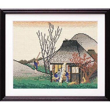 Olympus オリムパス クロスステッチ 刺しゅうキット 広重画 東海道五拾三次 鞠子 名物茶店 ベージュ 7141