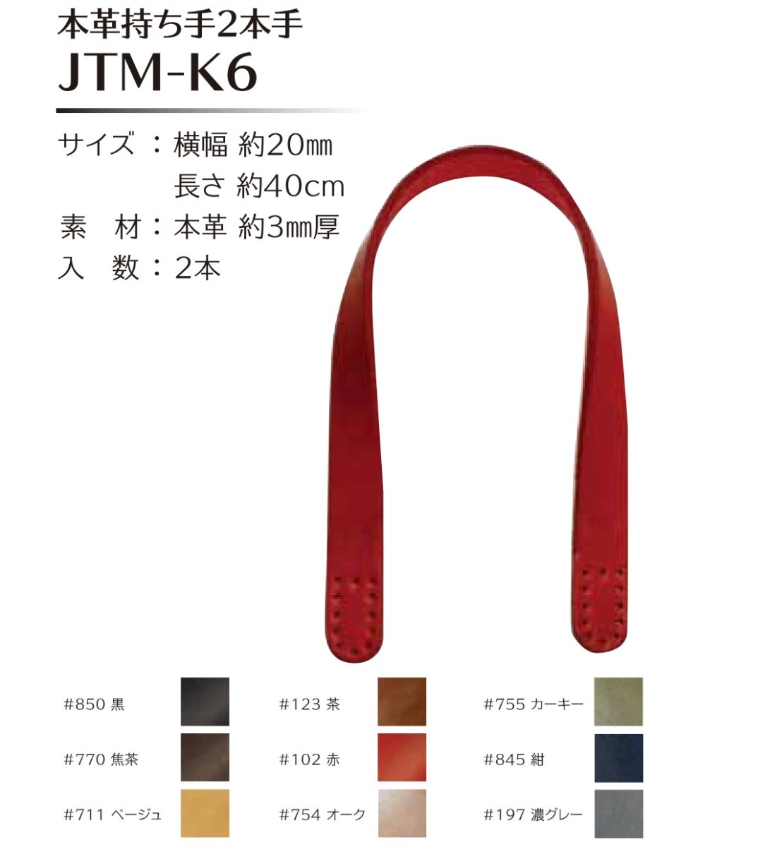 Joint ソウヒロ 本革 持ち手 2本手 約2cm幅×40cm 約3mm 厚 JTM-K6