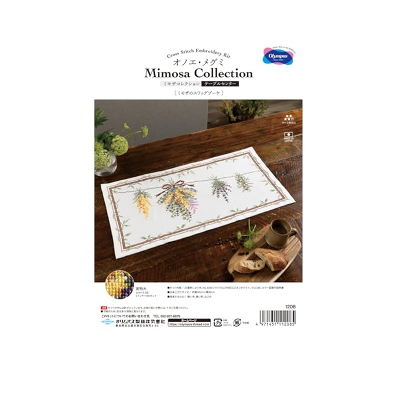 Olympus オリムパス 刺しゅうキット クロスステッチ オノエ・メグミ テーブルセンター 1208 ミモザ の リース スワッグ ブーケ