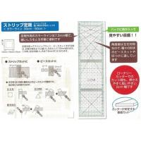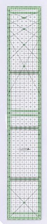 また、定規の周囲の目盛の背景「カラーライン」は、縫いしろ幅にあわせた7.5 mmなので、縫いしろをとる作業も楽にできます。押さえやすい8cmの広幅でピースカットに必要な角度線も充実しています。