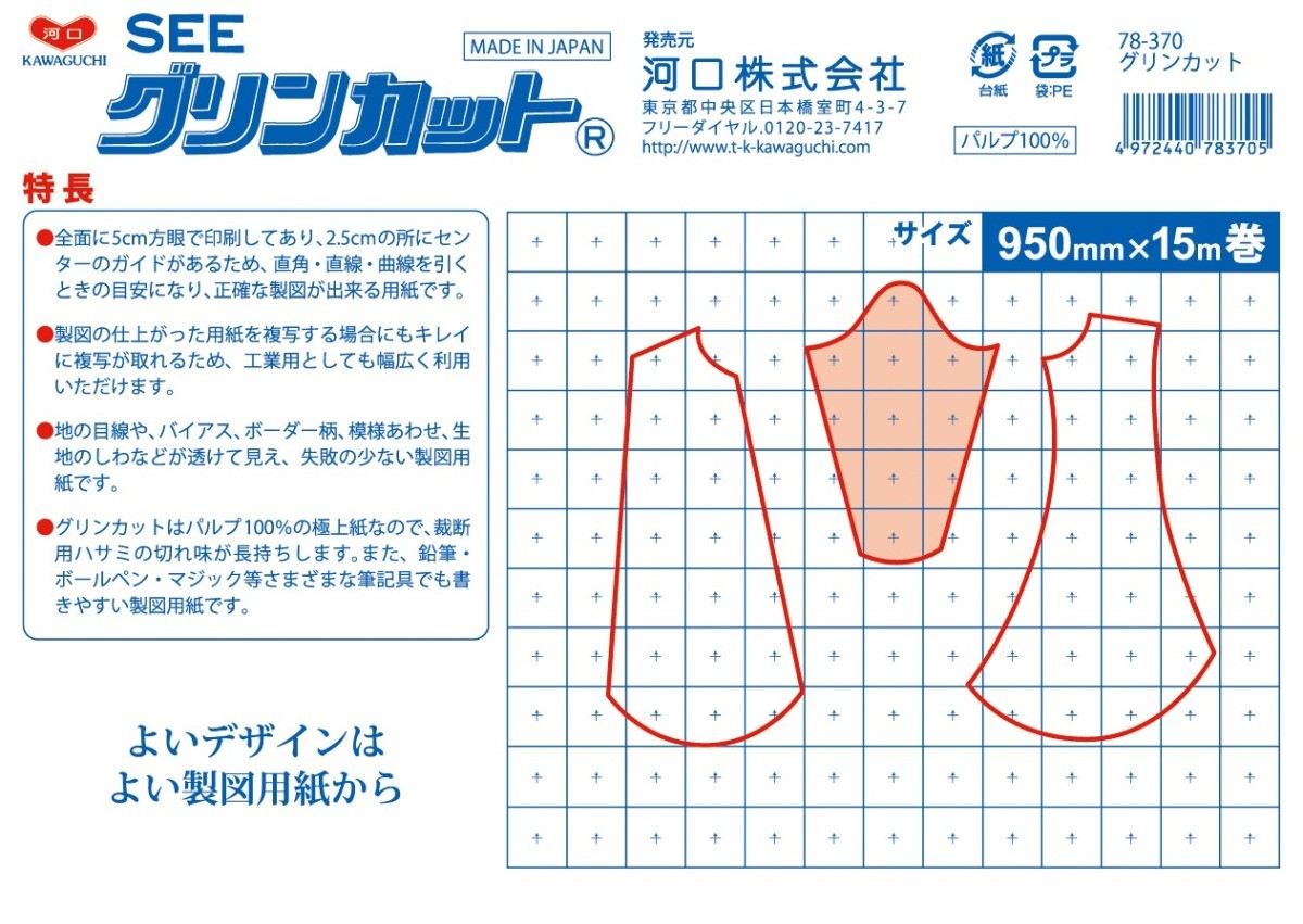 KAWAGUCHI 河口 製図用紙 マス目 グリンカット 95cm×15m巻 TK78-370