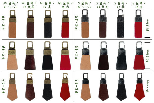 【INAZUMA】2個入。本革ファスナーの引き手。修理、交換に FK-1A〜5A、FK-1S〜5S