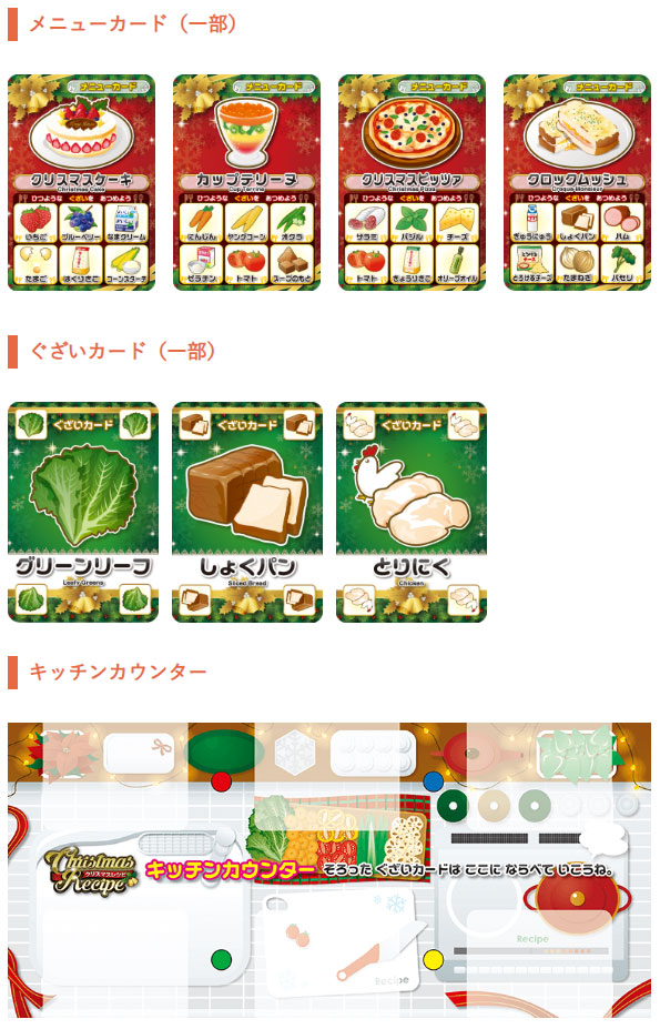 『メニューカード』と『ぐざいカード』の絵柄面は星柄がキラキラ輝くホログラム加工されたカードになっており、クリスマス感たっぷりの特別なレシピとなっております。