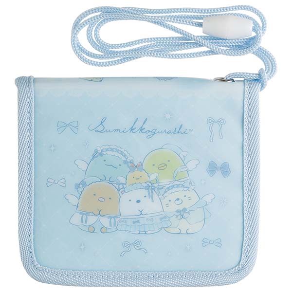 すみっコぐらし キッズワレット (エンジェルリボン) WL38302 【ブルー 子供用 お財布 ネックストラップ 紐付き コインケース ファスナー付き】