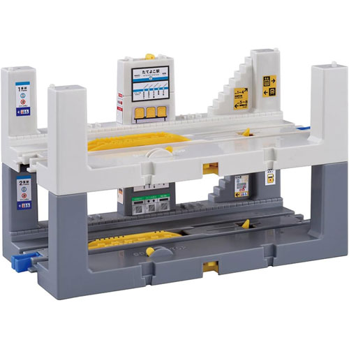 ※車両とレールは別売です。 ※たてよこ駅はセット内容の範囲内であそんでください。3個以上つなげると正しく動作しない場合があります。 ※橋脚の上にのせることはできません。 ※6両連結車両など一部車両は正しく動作しない場合があります。