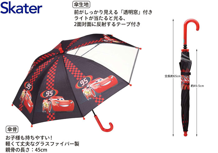 【ライトニング・マックィーン 子供 傘 45cm 手開き 透明窓付 サイズ 3歳 4歳 5歳 幼稚園 おしゃれ かわいい 子ども スケーター skater UB45 キッズ キャラクター】