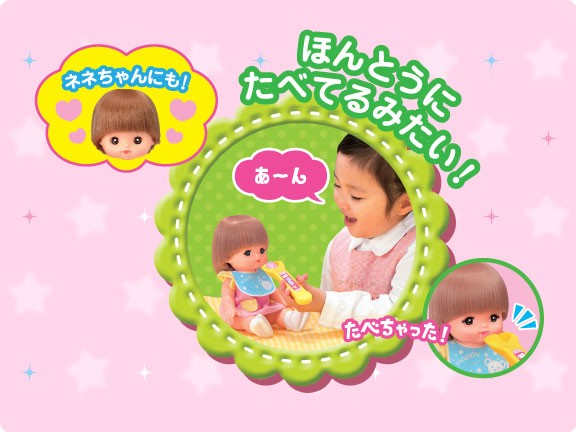 メルちゃんの口に近づけると・・・パクッ!本当に食べたみたいに見えます。