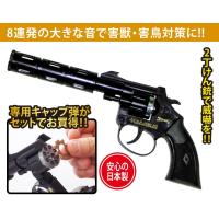 火薬式の8連発モデルの大きな音でカラスなどの鳥類から、ネコ、サルなどのならずものを音で威嚇します。エアガンやガスガンと違って命中させて傷つけるものではありません。軽くて片手で使えるので性別問わずお使いいただけます。しかも、2丁でこのお値段!!1152発の弾もお付けして、お買得価格でお届けいたします。