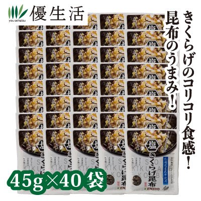 健翔 塩きくらげ昆布 乾燥きくらげ (40袋) 佃煮 即食 時短レシピ 美味しい 北海道産昆布 お弁当 パスタ おにぎり チャーハン