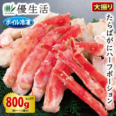 新鮮で大振りなたらばがにを丁寧にボイルし、食べやすいサイズにカットした「ハーフポーション」。殻を割る手間を少なく、身を取り出しやすく加工しているので簡単に堪能できます。高級たらばがに特有な上品な甘みと、ぷりっとした食感はまさに贅沢そのもの。800gのボリュームで、ご家族やご友人との食卓を彩るのにぴったりです。