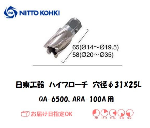 日東工器(NITTO KOHKI) アトラエースQA-6500、ARA-100A用環状刃物(ハイブローチ) 穴径31mm用です。最大板厚25mmとなっています。