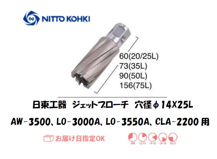 日東工器(NITTO KOHKI) アトラエースLO-3000A、LO-3550A、CLA-2200用環状刃物(ジェットブローチ) 穴径14mm用です。最大板厚25mmとなっています。