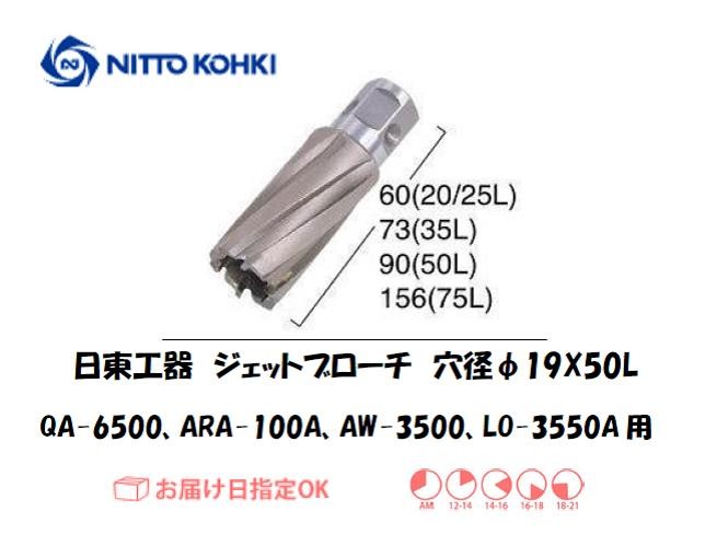 日東工器(NITTO KOHKI) アトラエースQA-6500、ARA-100A、AW-3500、LO-3550A用環状刃物(ジェットブローチ) 穴径19mm用です。最大板厚50mmとなっています。