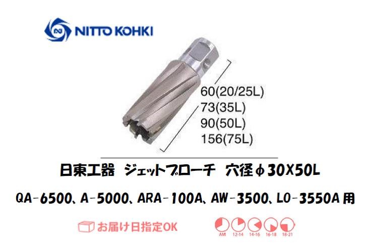日東工器(NITTO KOHKI) アトラエースQA-6500、A-5000、ARA-100A、AW-3500、LO-3550A用環状刃物(ジェットブローチ) 穴径30mm用です。最大板厚50mmとなっています。