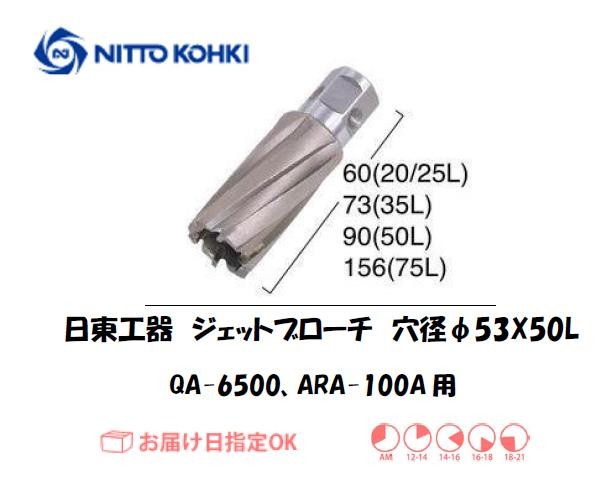 日東工器(NITTO KOHKI) アトラエースQA-6500、ARA-100A用環状刃物(ジェットブローチ) 穴径53mm用です。最大板厚50mmとなっています。
