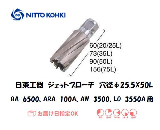 日東工器(NITTO KOHKI) アトラエースQA-6500、ARA-100A、AW-3500、LO-3550A用環状刃物(ジェットブローチ) 穴径25.5mm用です。最大板厚50mmとなっています。
