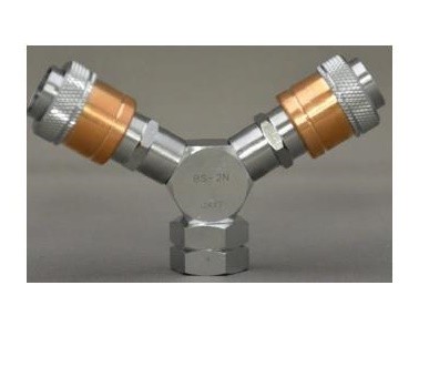 小池酸素工業 アポロコック BS-1N は、酸素ガス調整器の出口ポートに取り付けて2方向に分岐できるソケット継手です。