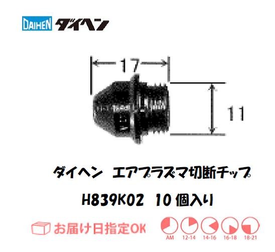 ダイヘン DAIHEN エアプラズマ切断用チップ H839K02 50A用 10個入り インボイス制度対象適格請求書発行事業者