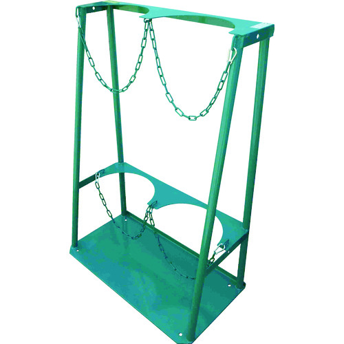 酸素・アルゴン・窒素などの大型高圧ガス容器を、**2本同時にしっかり立て掛けて固定** できます。