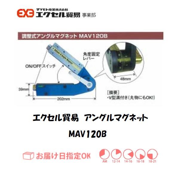 エクセル貿易 調整式アングルマグネット MAV120Bです。任意の角度設定(15度〜270度)ができます。磁力は強力です。両サイドON/OFFスイッチ付です。