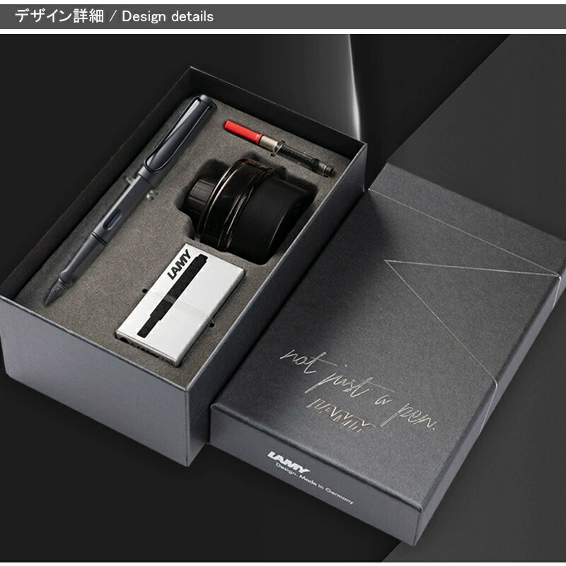 【商品説明】 Lamy back-to-school gift setラミー新学期ギフトセットサファリ万年筆ギフトセット ラミーの新学期・新生活ギフトはサファリ万年筆にフォーカス。ドイツで筆記具教育の教材として普及していることでも知られる人気モデル『ラミーサファリ』の万年筆に、専用コンバーターとボトルインク(ブラック)、カートリッジインク(ブラック)が付いたコンプリートセット。お好きなサファリ万年筆と組み合わせてご注文ください。