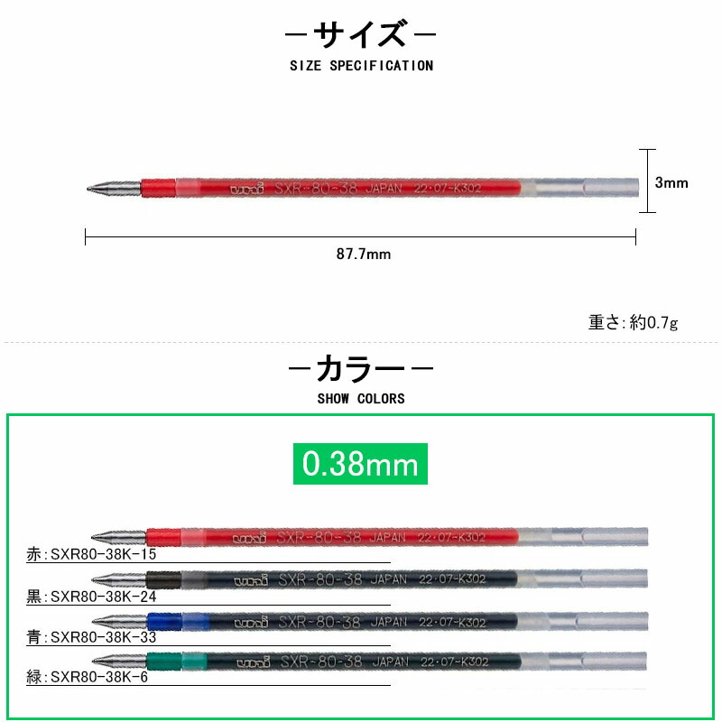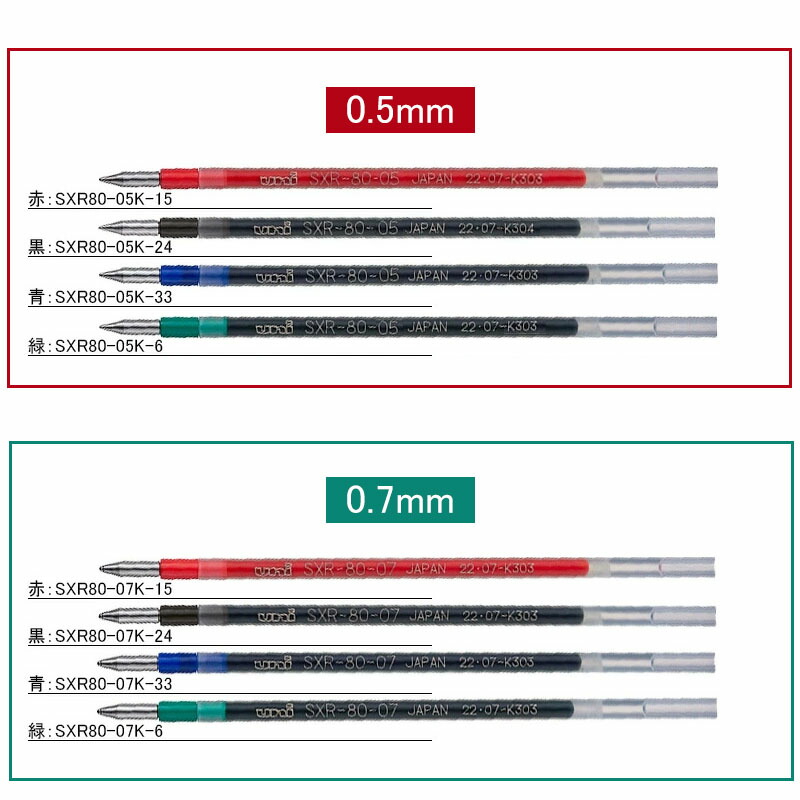 三菱鉛筆 MITSUBISHI 消耗品 油性ボールペン替芯 EF 0.38mm/細字 F 0.5mm/中字 M 0.7mm レッド/ブラック/ブルー/グリーン SXR80-05K SXR80-38K SXR80-07K ボールペン替芯 ジェットストリーム JETSTREAM 文房具 事務用