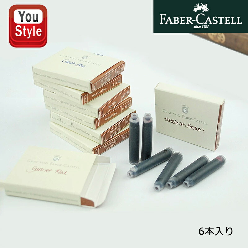 ファーバーカステル Faber-Castell 伯爵コレクション カートリッジインク カーポンブラック/コパルトブルー/へーゼルナッツブラウン/ストーングレー/モスグリーン/ガーネットレッド/ミッドナイトブルー/ディープシーグリーン/ロイヤルブルー GF14110 全15色 6本入り オフィス
